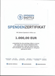 Im Januar 2022 haben wir 1000 Euro für die Opfer der Flutkatastrophe im Ahrtal gespendet. Unser Geld ist im Speziellen für die Trauma- und Trauerbewältigung der dort lebenden Kinder bestimmt. Über den „Spendenshuttle“ e.V. der Zeitschrift Focus gelangt es sicher an die richtige Adresse. Der gesamte Vorstand des Vereins kommt aus dem Ahrtal und lebt vor Ort. Seit dem ersten Tag der Katastrophe haben sich die Gründungsmitglieder in verschiedensten Aktionen für die Menschen im Tal engagiert.