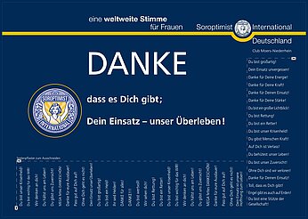 Trotz aller Corona-Einschränkungen können wir auf ein erfolgreiches Jahr 2021 zurückblicken. So konnten durch Spendengelder Bücher, ein Farb-Drucker und zwei Laptops für die Kinderfreizeiteinrichtungen Seestern und Asbär angeschafft werden. Das St. Josef und das Bethanien-Krankenhaus freuten sich über einen Dankeschön-Scheck für die Ärzte und Pfleger*innen der COVID-Stationen. In einer großen Sparschwein-Sammelaktion zusammen mit den Moerser Kaufleuten und der Sparkasse (Aktion girocents) wurden stolze 4200 Euro für das Moerser Frauenhaus generiert. Außerdem haben wir zusammen mit der Gleichstellungsstelle wieder den Orange Day, den Internationalen Tag gegen Gewalt an Frauen organisiert.