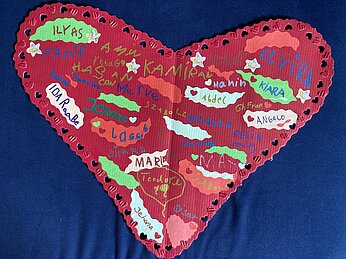 Für den neuen Drucker bedankten die Kinder sich mit einem selbstgebastelten roten Herzen.