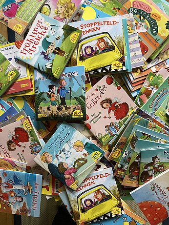 Als Preise für einen großen Malwettbewerb zum Thema Corona wurden 100 Pixiebücher an die Mitarbeiter*innen der Offenen Einrichtung für Kinder 'Seestern'in Moers übergeben.
