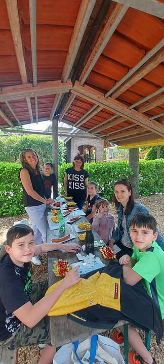 Die anschließende „Pommes-Schlacht“ am Grillplatz zeigte: Pommes mit Würstchen sind „international“ und beliebt bei Groß und Klein.