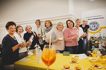 Gutgelaunt verkaufen die Soroptimistinnen des Club-Moers-Niederrhein Cocktails mit und ohne Alkohol für den guten Zweck. Foto: Bettina Engel-Albustin.