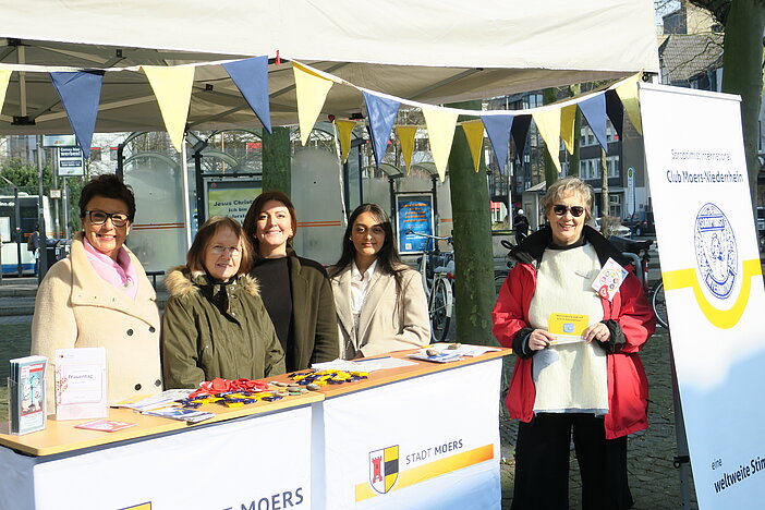 v.l.: Petra Onasch-Szerman(Soroptimistin); Ruth Lubitz-Dalig (Präsidentin des Soroptimist-Club Moers-Niederrhein); Jacqueline Rittershaus ( Gleichstellungsbeauftragte der Stadt Moers);Evin Karabulut (Auszubildende der Stadt Moers); Karin Wendt (Soroptimistin); Foto: Elke Anna Heitfeld