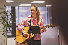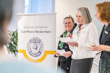 Das Rahmenprogramm bestand aus der Begrüßung durch Sparkassen-Vorstand Giovanni Malaponti, Reden von unserer Präsidentin Margot Riße und unserer ehemaligen Präsidentin Ruth Lubitz-Dalig, der Vorstellung der Protagonistinnen durch Birgit Kunzner, Monika Hanewinkel (Text/Interviews) und Bettina Engel-Albustin (Fotos) sowie der musikalischen Begleitung der wunderbaren Angelina Kalke. Danach gab es noch einen schönen Ausklang mit einem guten Austausch.
