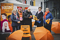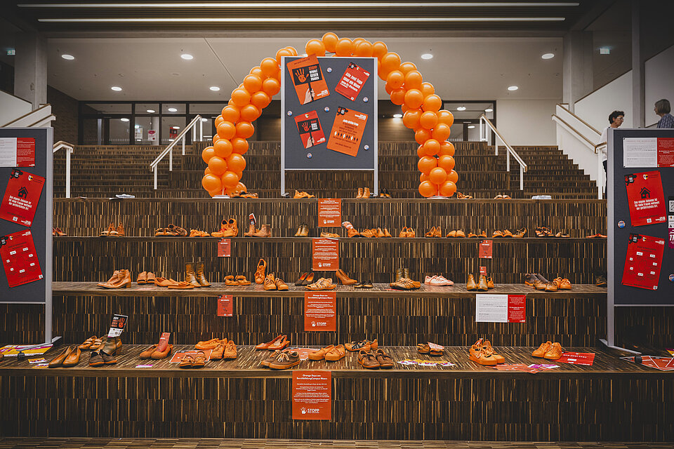 Die orange Farbe ist hierfür bezeichnend. Orange Schuhe sollten verdeutlichen, wie viele Frauen von Gewalt betroffen sind.